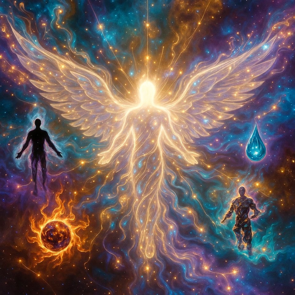 Wiele dusz przed wcieleniem nie przejawiało się jako anioły, elfy, krasnoludy – posiadające już formę, funkcję i zadania. Dopiero inkarnacja w ciało fizyczne, często wielokrotna, odciskała piętno, i dusza przyoblekała taką formę, jaką prezentowało jej ciało materialne. Kolejne wcielenia w różne formy kosmiczne odciskały kolejne piętna, a dusza przechodziła ewolucję. Często jednak wybiera kształt najważniejszy dla siebie, wyrażający jej odczucia. J.R.R. Tolkien ma tylko jedną identyfikację – to hobbit. Jego syn Christopher Tolkien emanuje innymi energiami; jego dusza nie ma jednoznacznego kształtu hobbita, ale wcielenie w ciało hobbita musiało odcisnąć na nim silne piętno. Stąd jego emanacja jest wielowymiarowa i zmienia się wraz z wiekiem i doświadczeniami.