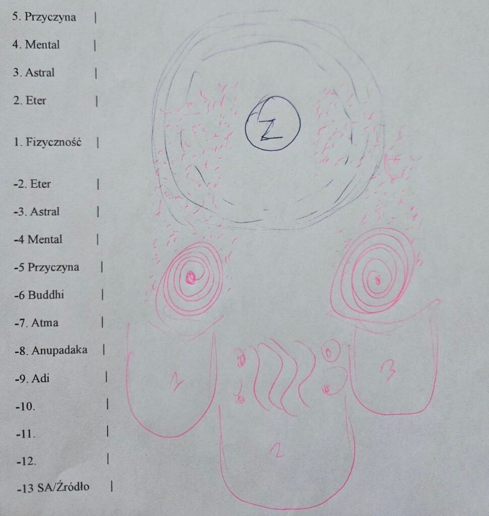 Nikodem: Nie narysowałem tego na ciele eterycznym, bo tam jest pełno małych stworzeń – musiałbym narysować tysiące kropek. Stań przed swoim ciałem eterycznym.